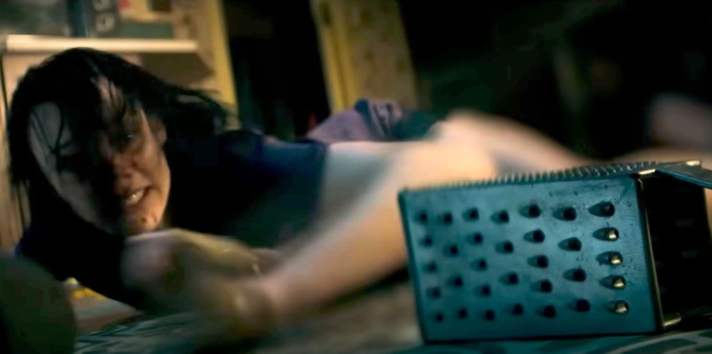 - Cheese grater – Evil Dead Rise (2023) – Demon possessed Ellie uses a cheese grater during a fight with her sister Beth.